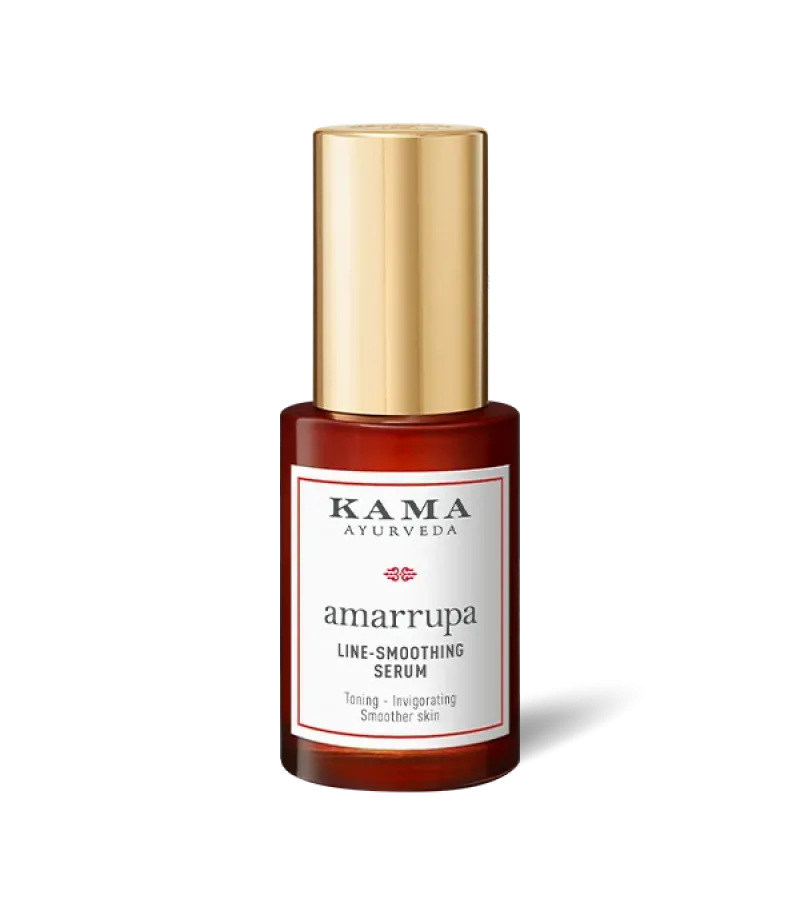 Revitalise your skin with Kama Ayurveda's New Amarrupa Line Smoothing Face Serum, designed to smooth fine lines, firm sagging skin, and restore a radiant, youthful glow. This transformative serum is enriched with Amarrupa Facial Oil and potent actives, including energising Terminalia Arjuna Oleoactive and firming Repulpami, which help tightens the skin and delivers a visible plumping effect for renewed vitality. Shea Butter locks in moisture, leaving skin velvety soft, while Hyaluronic Acid replenishes hydration for enhanced elasticity.