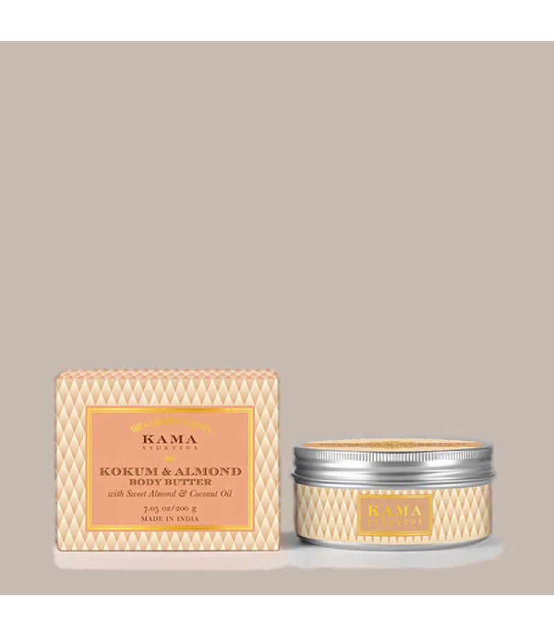 Indulge your skin with Kama Ayurveda’s Kokum & Almond Body Butter, a rich and creamy moisturizer designed to provide deep hydration and nourishment. Enriched with organic Sweet Almond Oil, Coconut Oil, and Kokum Butter, this body butter helps soothe dry skin, improve elasticity, and restore your skin’s natural glow. Perfect for daily use, it leaves your skin feeling soft, smooth, and protected.
